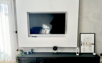 Salon: Kanapa, stolik, stół z 4 krzesłami, komoda z miejscem i podłączeniem pod TV.