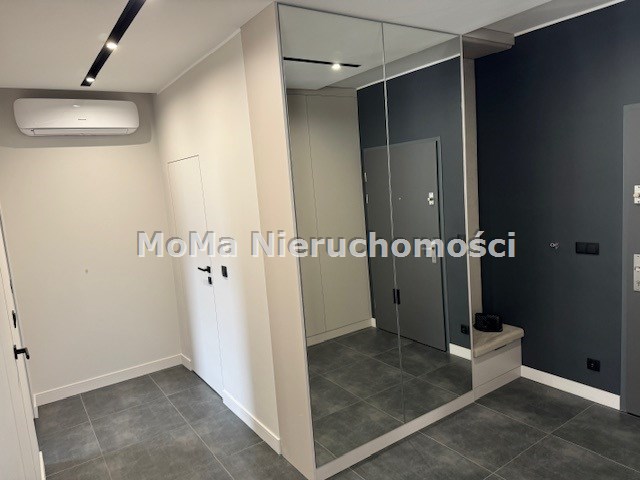 Przedpokój z lustrem i szafą do przechowywania.