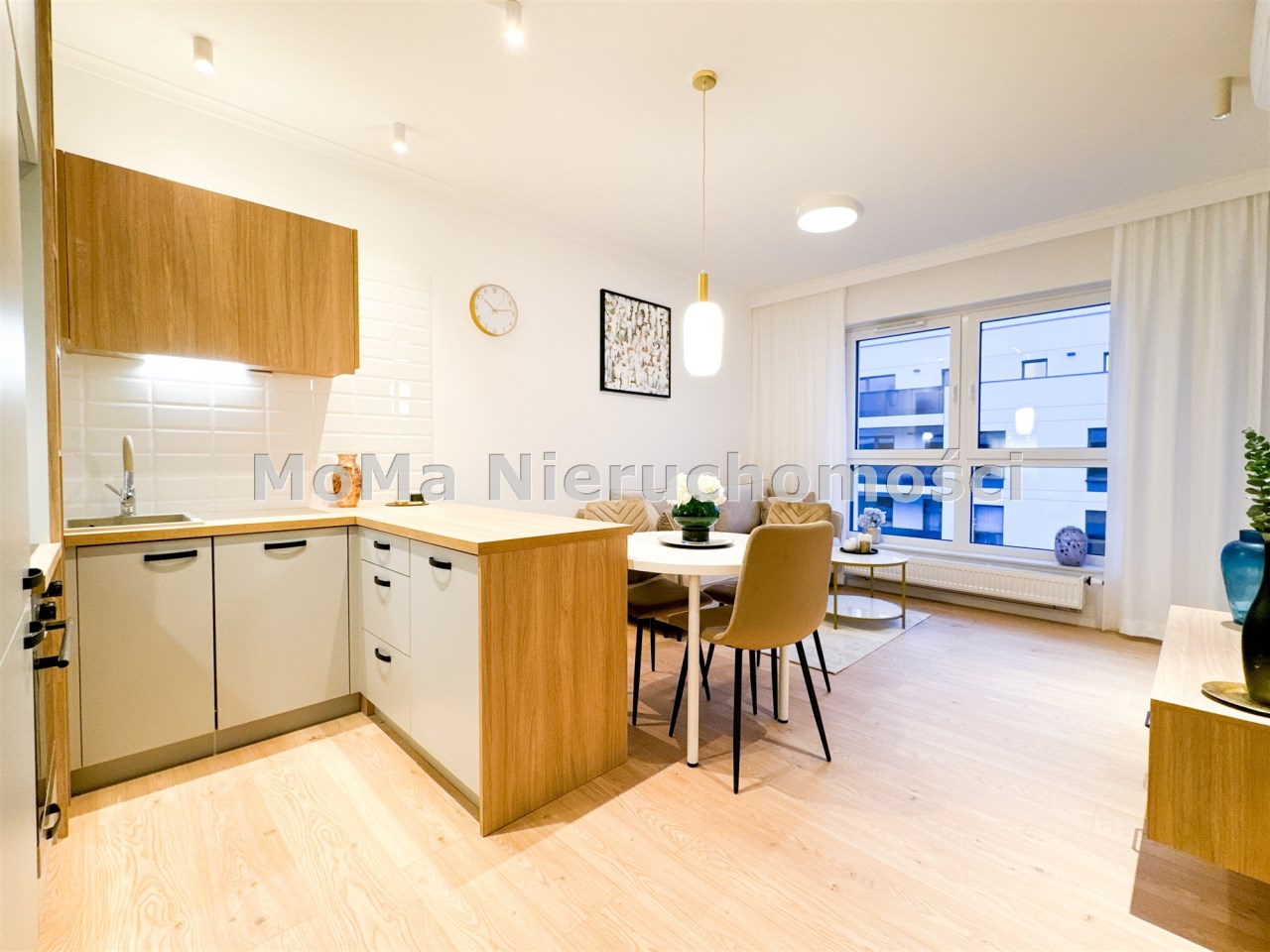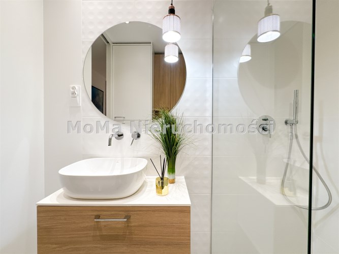 Mieszkanie nowoczesne, bardzo jasne z funkcjonalnym układem. Mieszkanie posiada salon z aneksem z wyjściem na balkon, oddzielną sypialnię oraz łazienkę. Duża szafa z miejscem do przechowywania w sypialni oraz szafa w korytarzu.